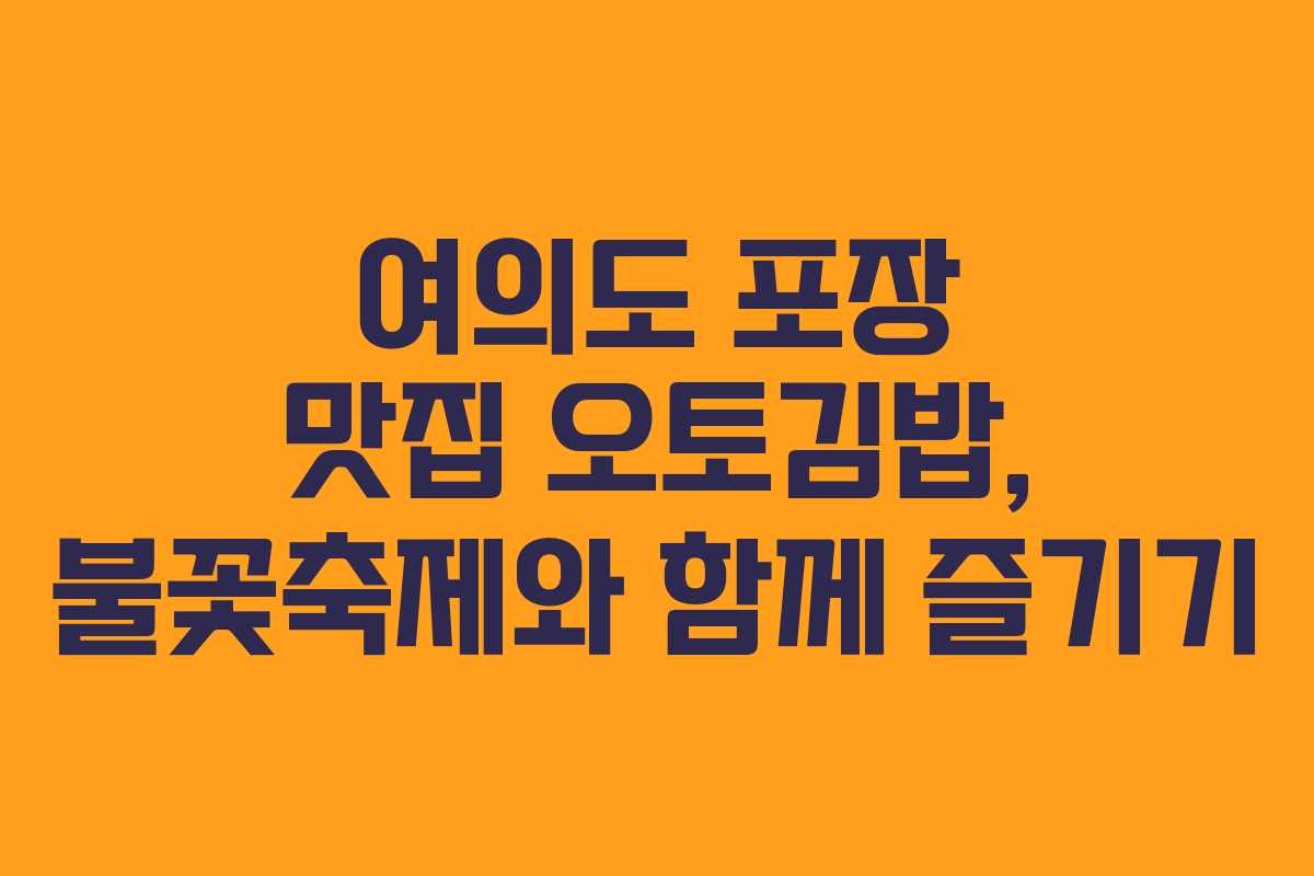 결론적으로, 여의도 오토김밥은 건강한 재료와 맛있고 다양한 메뉴로 많은 사랑을 받고 있는 맛집입니다. 불꽃축제와 같은 특별한 날에 포장하여 즐기기 좋은 이곳은 여의도에서 꼭 가봐야 할 장소입니다. 한 끗 차이로 특별한 추억을 만들어 보세요.