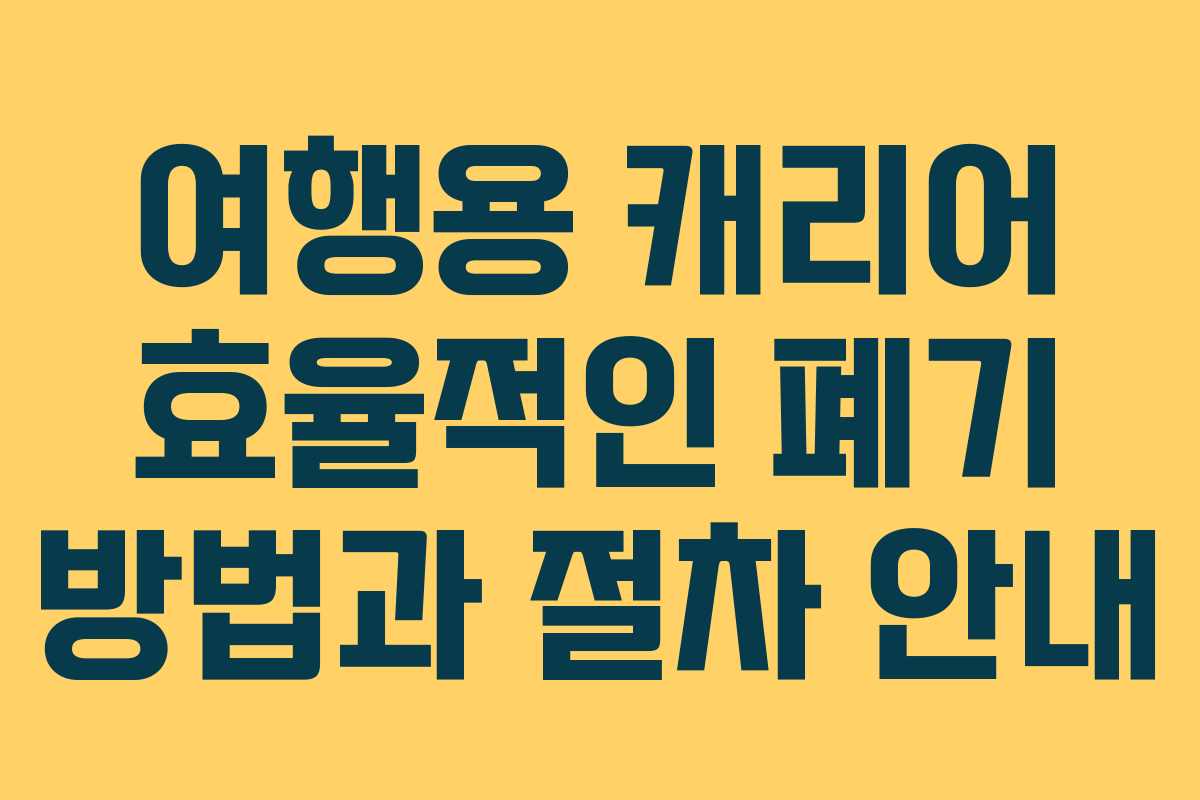 이 과정을 통해 여행용 캐리어를 손쉽게 폐기할 수 있습니다. 이러한 절차를 잘 이해하고 따르면, 불필요한 번거로움 없이 효율적으로 처리할 수 있습니다.