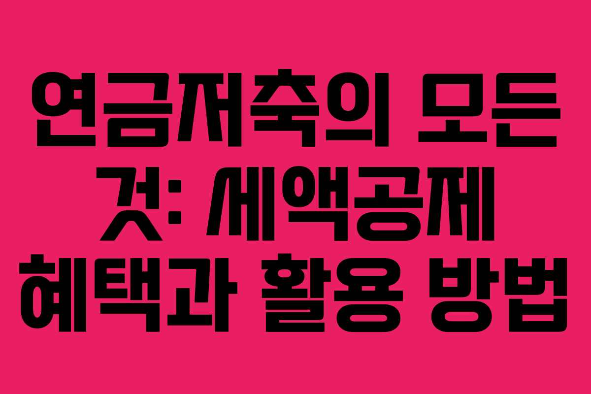 연금저축의 모든 것: 세액공제 혜택과 활용 방법