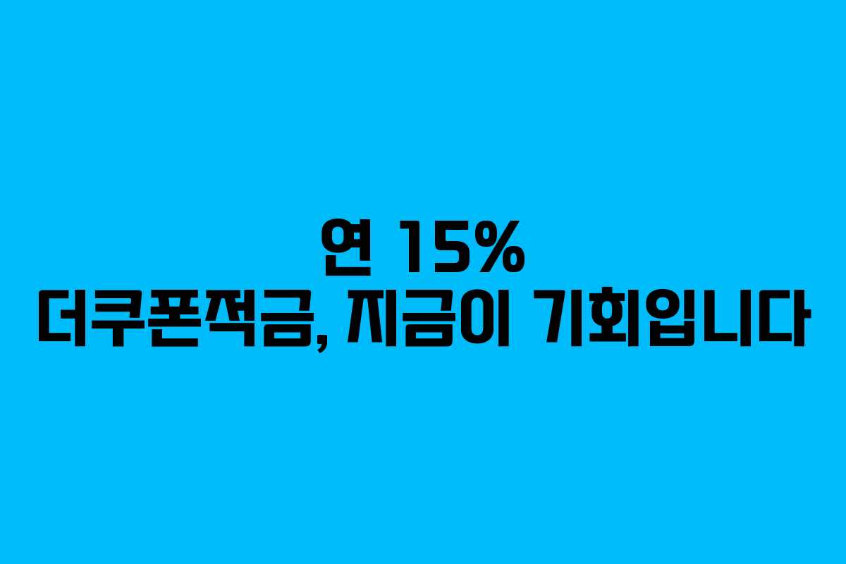 2026년 상반기에 출시된 연 15%의 더쿠폰적금은 고객들에게 큰 혜택을 제공합니다. 가입 조건이 단순하고 고금리라는 점에서 많은 관심을 받고 있습니다. 이번 기회를 놓치지 말고, 반드시 빠르게 가입하여 실질적인 금융 혜택을 누리시기 바랍니다.