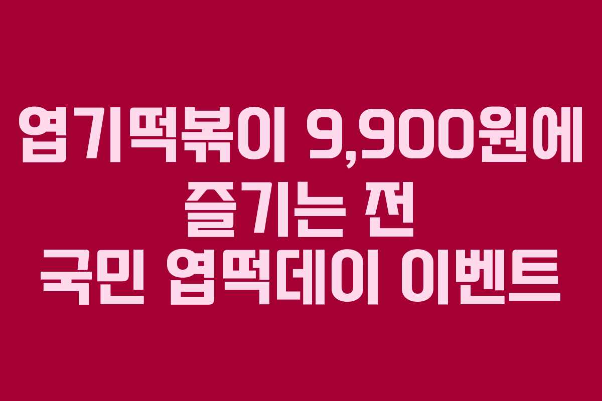 11월 11일부터 14일까지 진행되는 전 국민 엽떡데이 이벤트에서는 선착순 11만 명에게 동대문 엽기떡볶이를 9,900원에 제공하는 기회를 제공합니다. 이번 기회를 통해 할인된 가격으로 엽기떡볶이를 즐길 수 있는 방법을 알아보겠습니다.