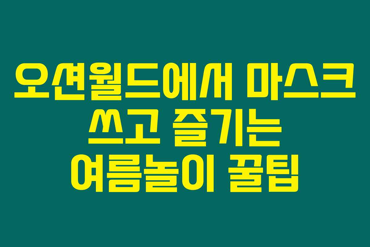 이른 여름휴가를 계획 중이신가요? 오션월드에 가시려는 분들께 유용한 꿀팁을 드리려고 해요. 오션월드에서 마스크를 쓰고 어떻게 즐길 수 있는지 궁금하신가요? 아래를 읽어보시면 물놀이를 만끽하기 위한 실질적인 팁을 확인할 수 있어요.