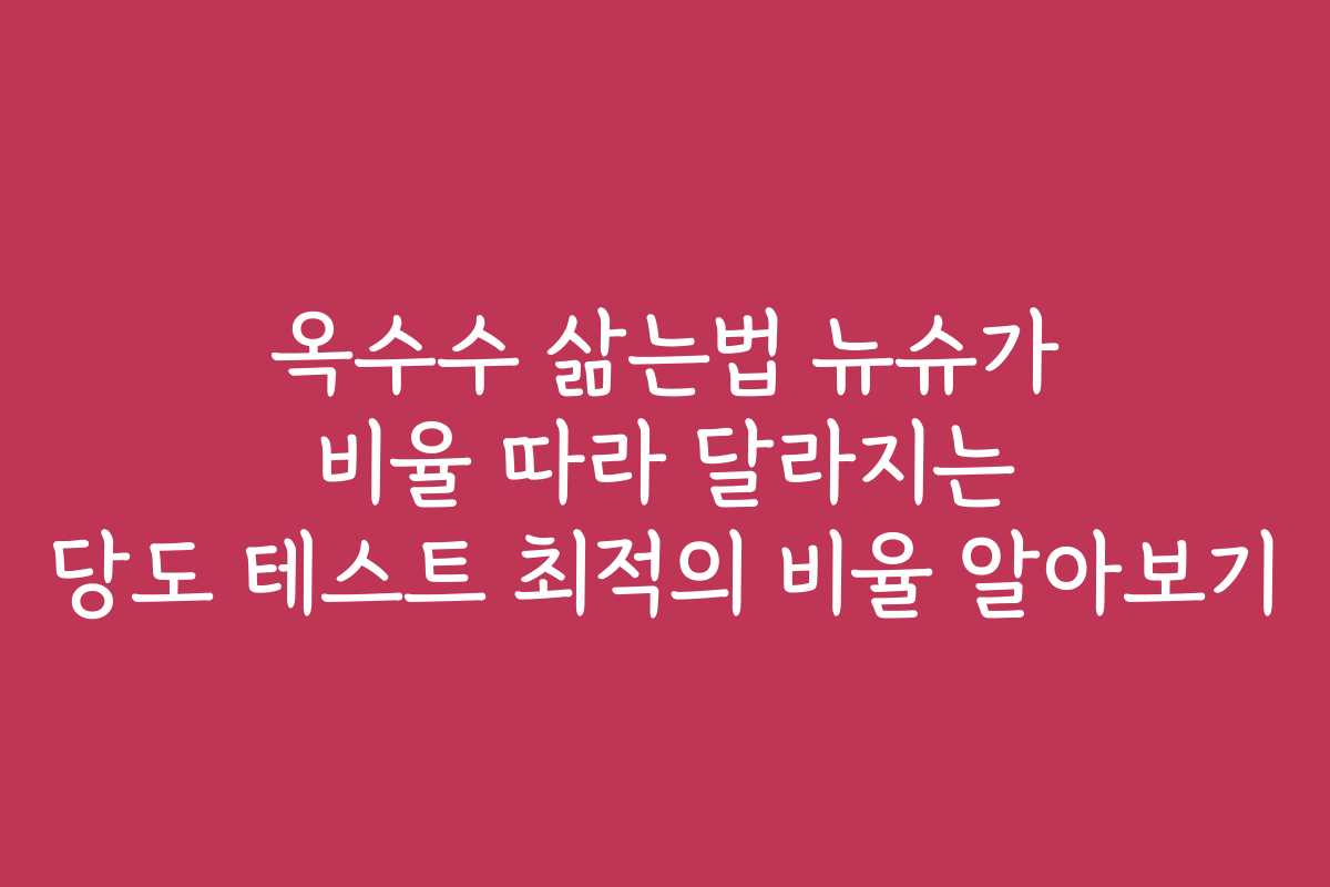 옥수수 삶는법에 대해 고민하고 계신가요? 뉴슈가 비율에 따라 옥수수의 당도가 어떻게 달라지는지 증명해보겠습니다. 이 포스팅에서는 최적의 삶는 비율을 찾아내고 최고의 맛을 경험하는 방법을 알려드립니다.