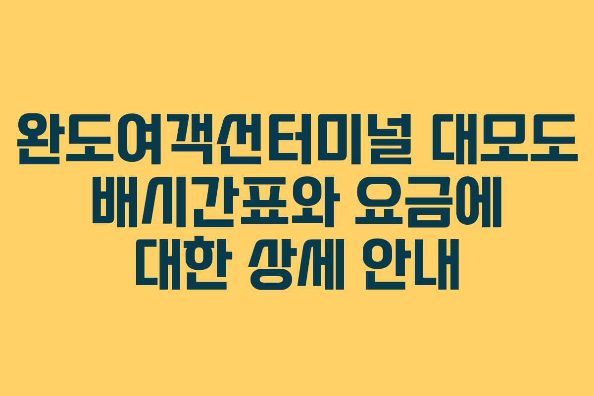 완도여객선터미널 대모도 배시간표와 요금에 대한 상세 안내