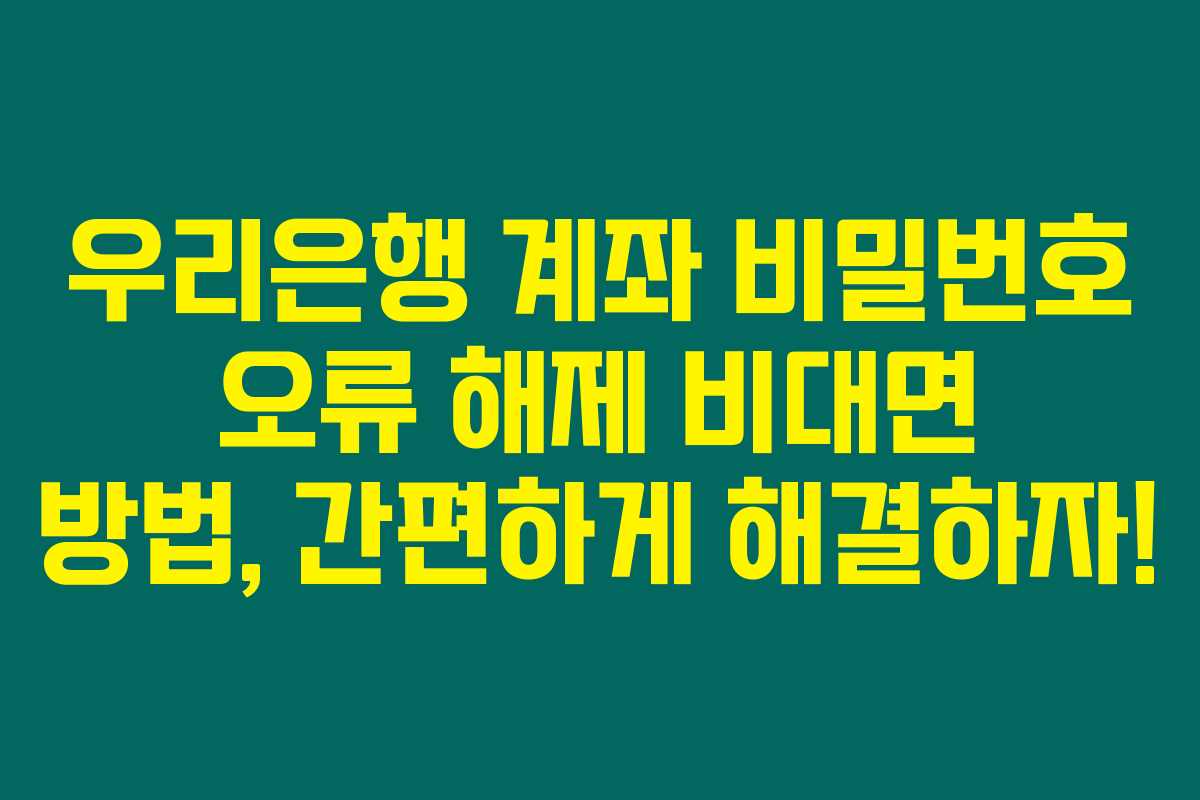 우리은행 계좌 비밀번호 오류 해제 비대면 방법, 간편하게 해결하자!