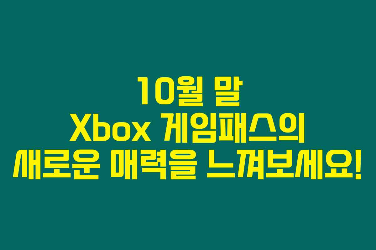 제가 직접 경험해본 결과로는, 10월 말은 Xbox 게임패스 유저들에게 새로운 게임들과 그리고 고전의 리마스터가 추가되는 진정한 기회의 달이랍니다. 위에서 언급한 내용처럼, 많은 인기 게임이 추가되어 더욱 넓어진 게임 세계에서 새로운 모험을 즐길 수 있는 기회가 많아요. 아래를 읽어보시면, 어떤 게임들이 어떤 특별한 재미를 선사하는지 자세히 알아볼 수 있답니다.