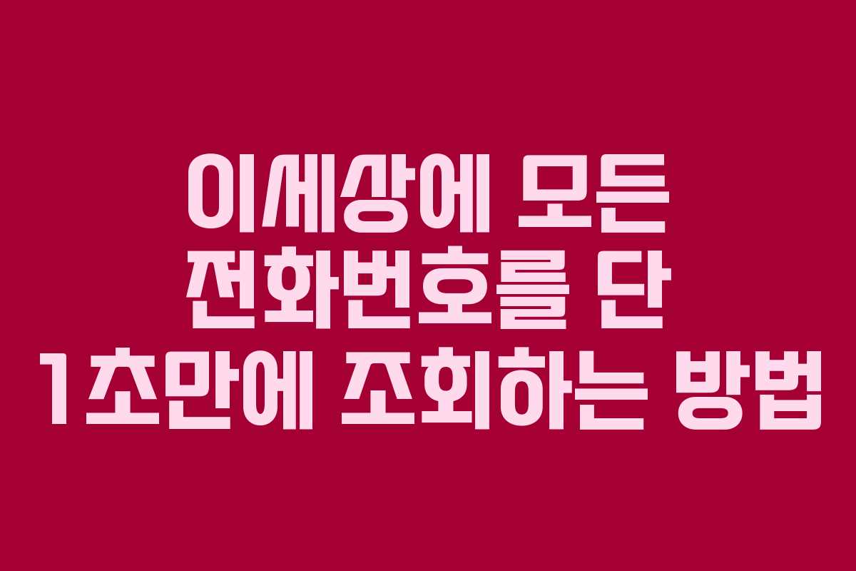 이세상에 모든 전화번호를 단 1초만에 조회하는 방법