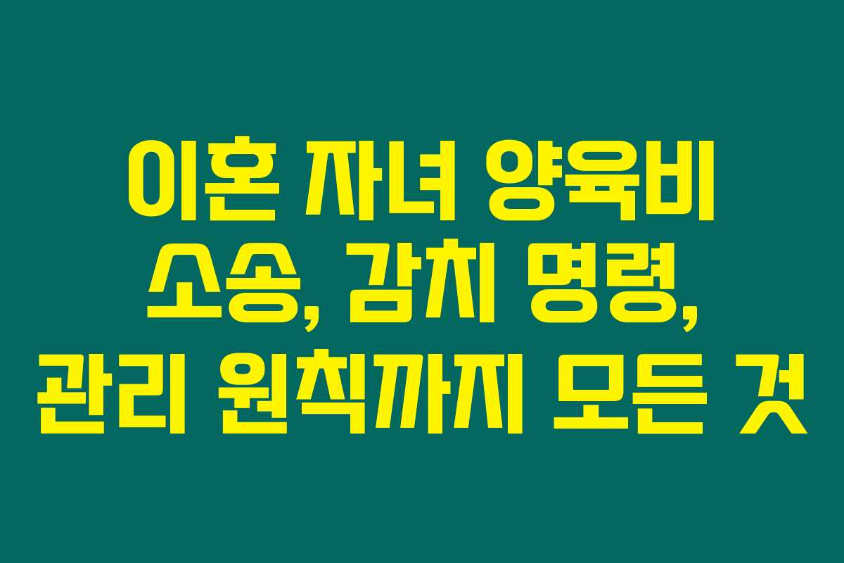 제가 직접 체크해본 바로는, 이혼 후 자녀의 양육비 문제는 많은 부모들이 겪는 가장 힘든 고비 중 하나입니다. 양육비는 단순한 경제적 부담이 아니라, 아이의 미래와 건강한 성장에 직결되는 문제이기 때문이에요. 아래를 읽어보시면 양육비 산정부터 소송, 감치 명령, 그리고 양육비 이행 관리에 대해 자세히 알아보실 수 있습니다.