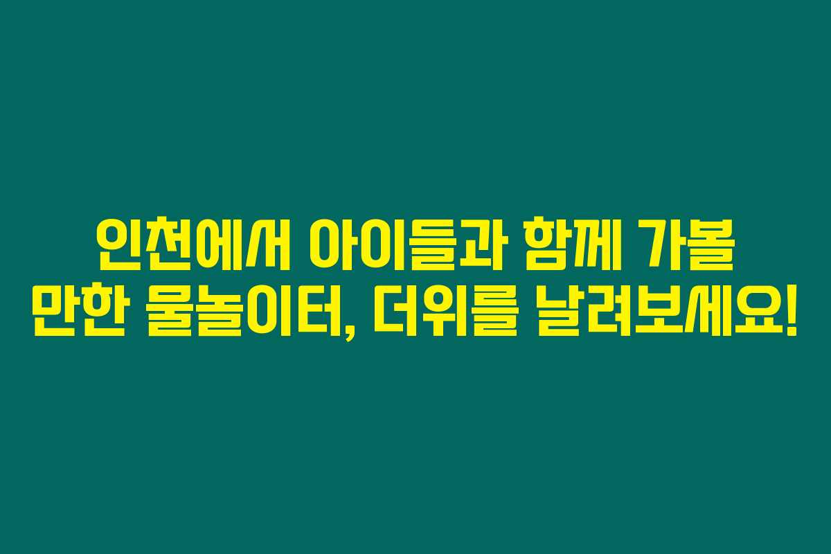 여름이 다가오면 환상적인 물놀이가 그리워지는 어린이들! 인천에는 아이들이 즐길 수 있는 물놀이터가 많답니다. 더위를 날릴 수 있는 여러 곳을 소개해 드릴게요. 아래를 읽어보시면 아이와 함께 여름을 시원하게 보낼 수 있는 방법을 찾을 수 있을 거예요!