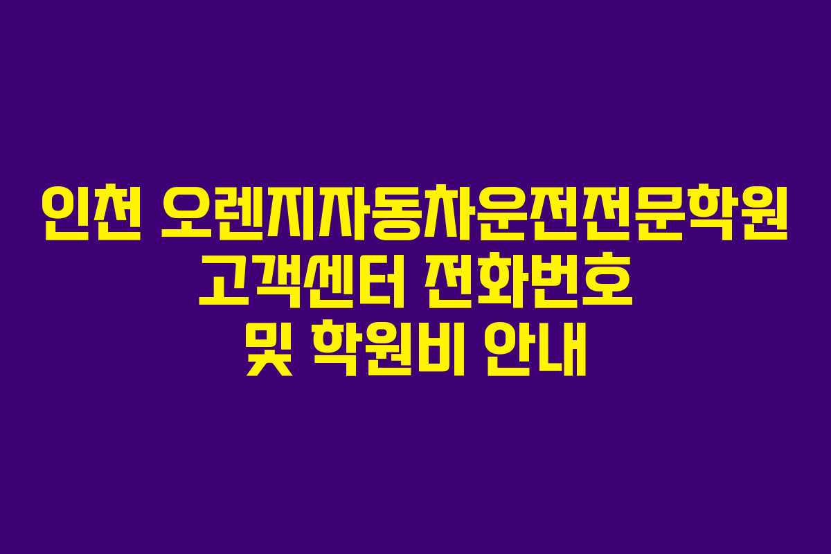 인천 오렌지자동차운전전문학원에 대한 정보와 학원비를 자세히 안내드립니다. 이 글에서는 학원의 고객센터 전화번호와 최신 학원비에 대해 정리하였습니다.