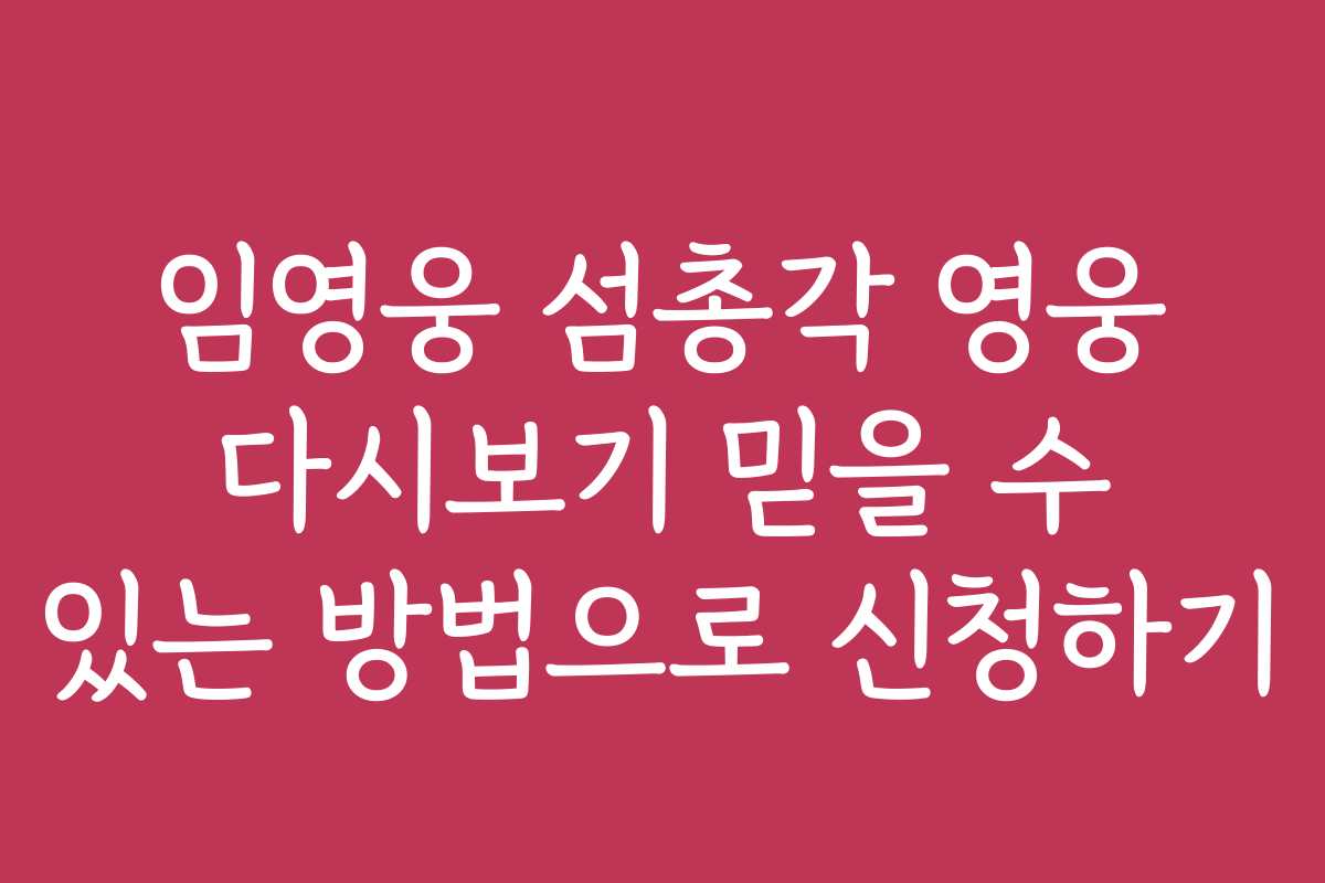 핵심 키워드: 임영웅, 섬총각, 다시보기, 믿을 수 있는 방법, 신청하기, 방법, 후기, 추천, 서비스, 비용, 절차