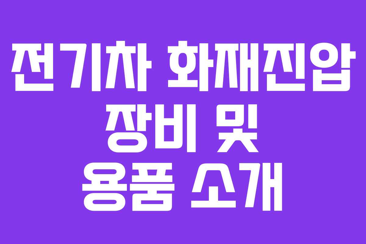 전기차의 보급이 증가하면서 화재 발생 위험도 함께 증가하고 있습니다. 이에 따라 전기차 화재를 효과적으로 진압하기 위한 다양한 장비와 용품이 개발되고 있습니다. 이번 글에서는 전기차 화재진압에 필요한 주요 장비와 그 특징을 소개하겠습니다.