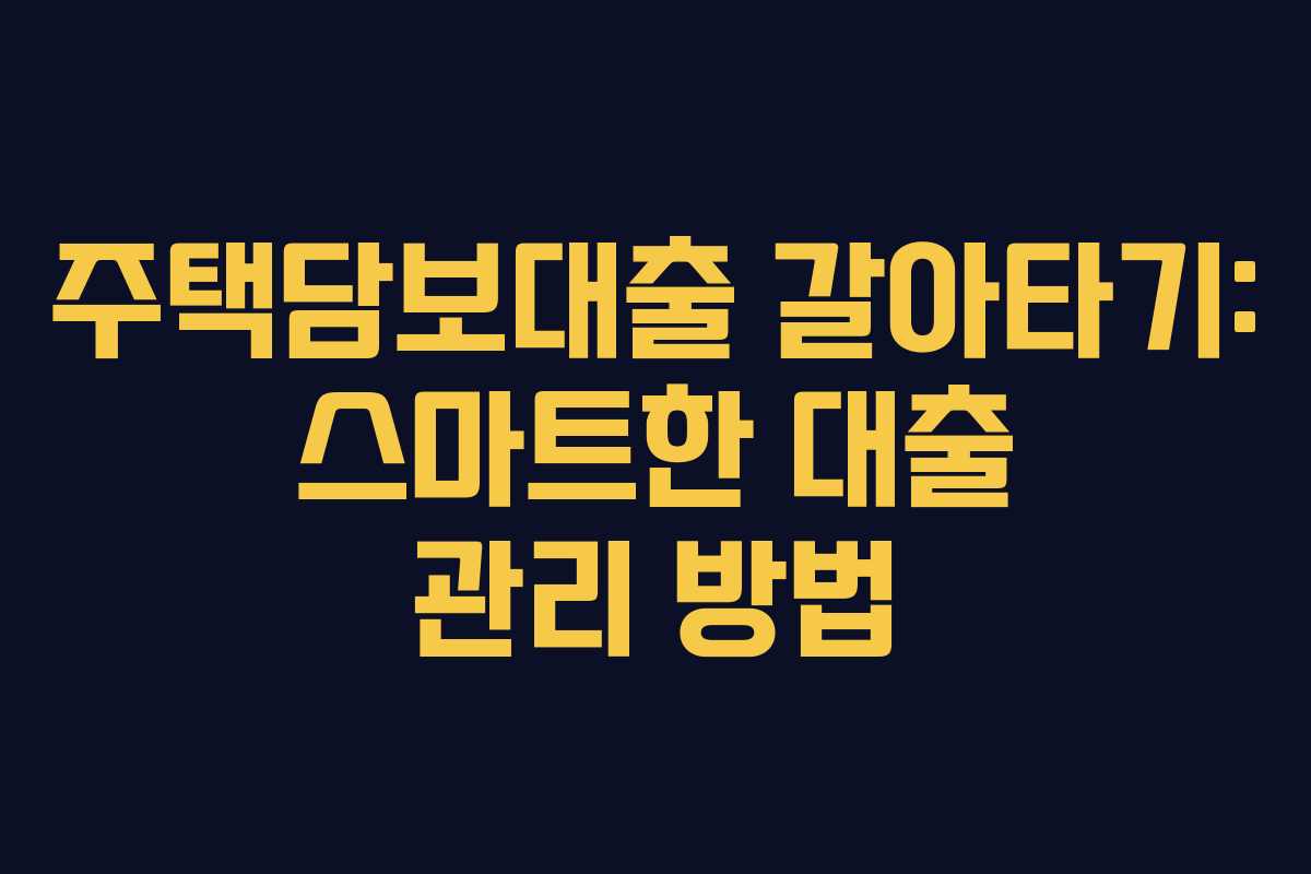 주택담보대출 갈아타기는 기존의 대출 조건을 개선하거나 새로운 주택으로의 이동을 위해 필요한 과정입니다. 이 글에서는 갈아타기의 두 가지 주요 유형과 이를 효과적으로 활용하는 방법에 대해 설명합니다.