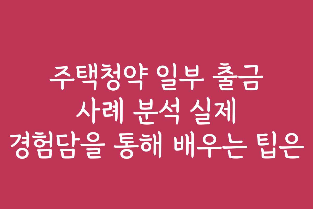 주택청약 일부 출금 사례 분석 실제 경험담을 통해 배우는 팁은