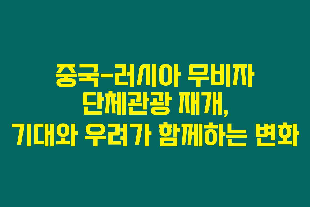 코로나19로 중단됐던 중국과 러시아 간의 무비자 단체관광이 이제 다시 시작된다는 소식이에요. 이 변화가 양국의 관광 산업에 어떤 영향을 미칠지, 팬데믹 이후 어떤 새로운 흐름이 나타날지에 대해 알아보려고 해요. 모든 궁금증을 풀어드릴테니 아래를 읽어보시면 많은 도움이 될 거예요.