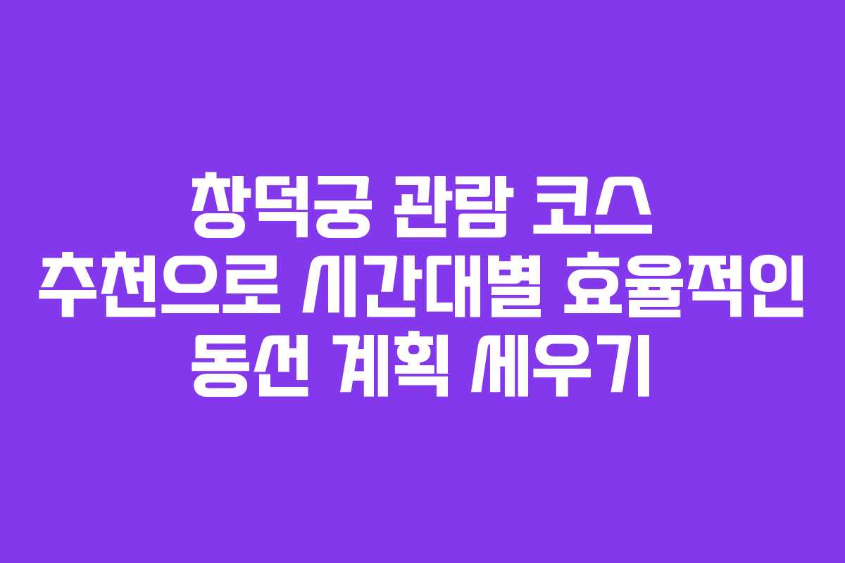 이제 창덕궁을 방문할 준비가 되셨길 바랍니다. 시간대별로 효율적인 동선을 계획하여 멋진 관람 경험을 만들어보세요.