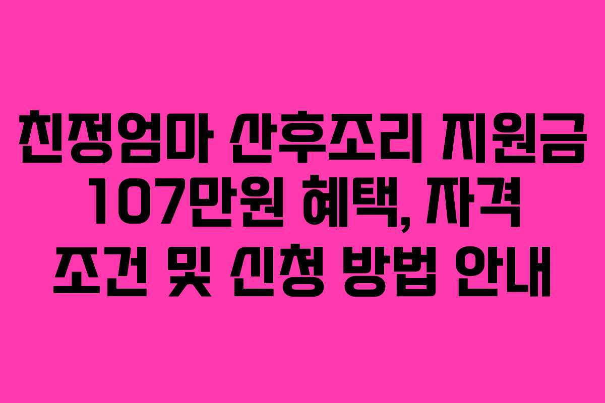 친정엄마 산후조리 지원금 107만원 혜택, 자격 조건 및 신청 방법 안내