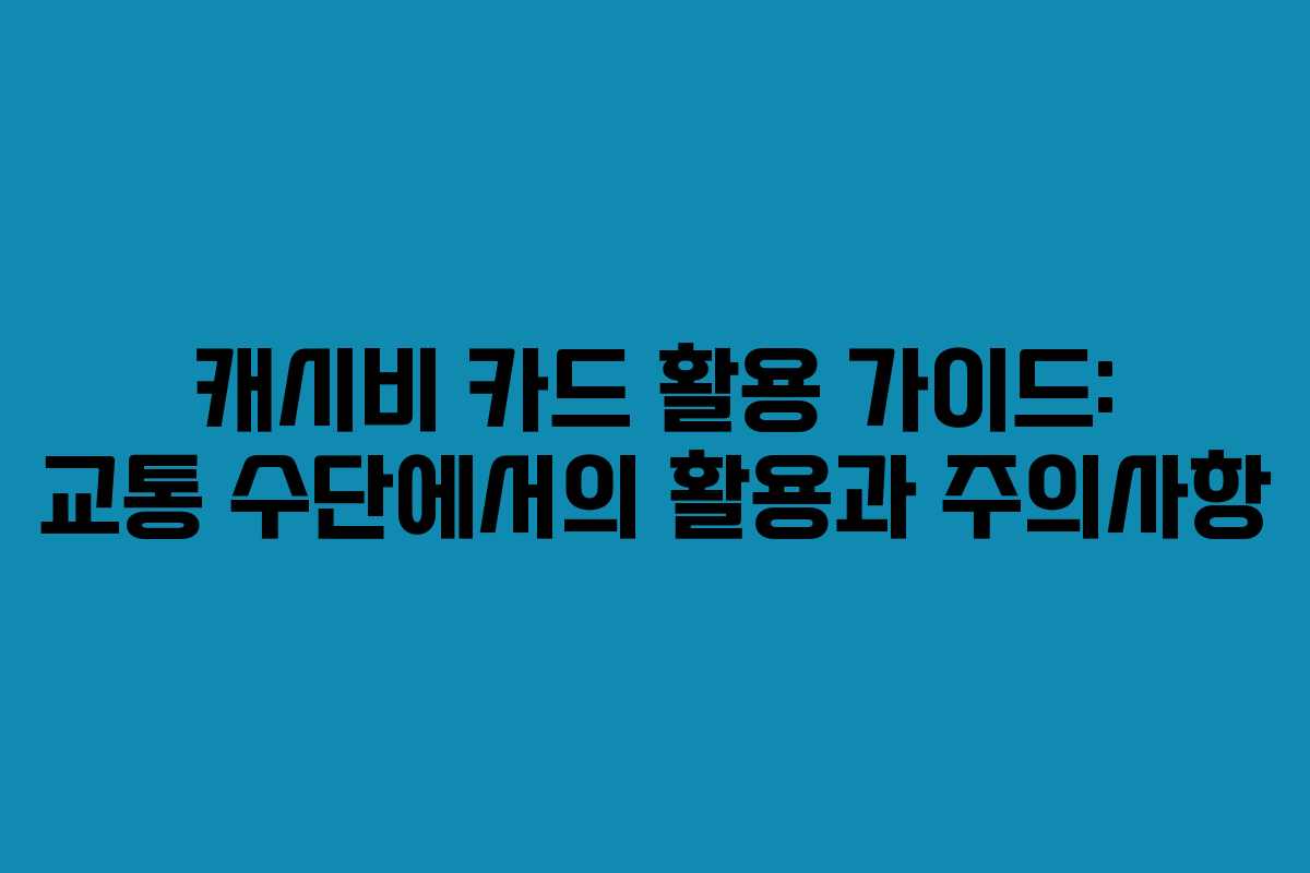 캐시비 카드는 다양한 교통 수단에서 사용될 수 있는 유용한 결제 수단으로, 이를 통해 더욱 편리한 이동이 가능합니다. 하지만, 카드 사용 시 몇 가지 주의해야 할 점들이 존재합니다. 이러한 정보를 통해 캐시비 카드를 보다 효과적으로 활용하는 방법을 안내합니다.