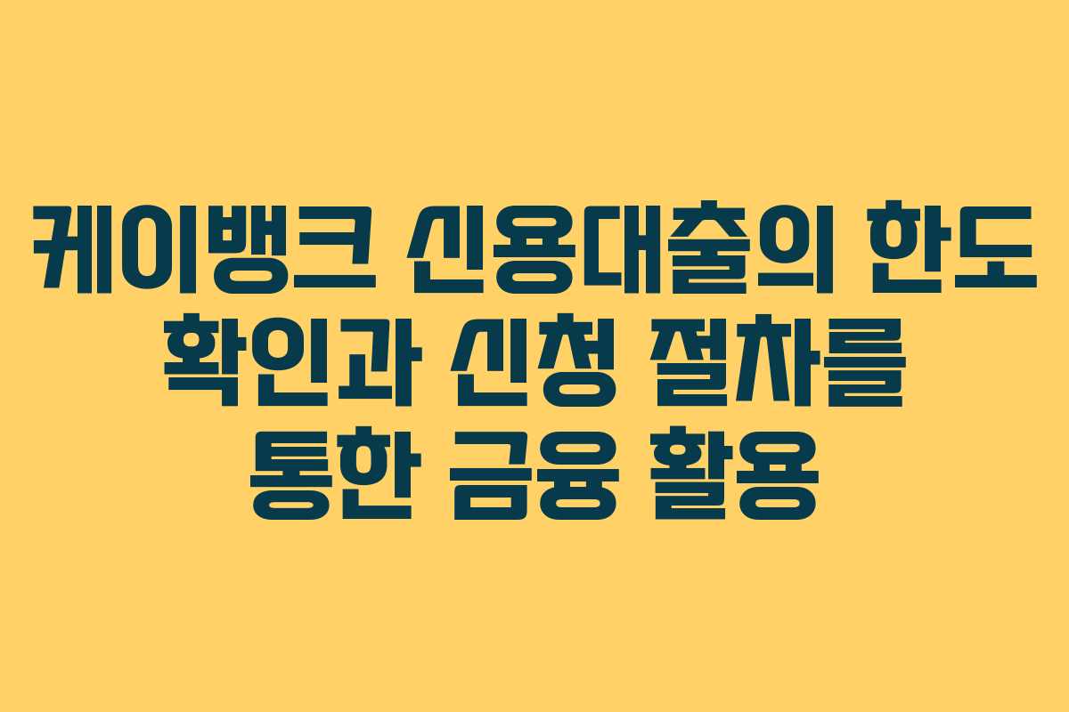 케이뱅크 신용대출의 한도 확인과 신청 절차를 통한 금융 활용