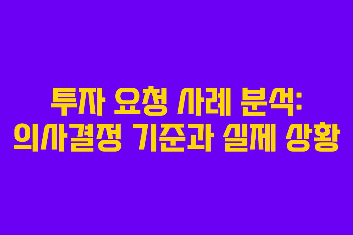 투자 요청 사례를 통해 의사결정 기준을 분석하는 것은 매우 중요합니다. 이 글에서는 두 가지 실제 사례를 통해 투자 구조의 복잡성을 살펴보고, 각 케이스에서 나타나는 의사결정 기준을 논의하겠습니다.