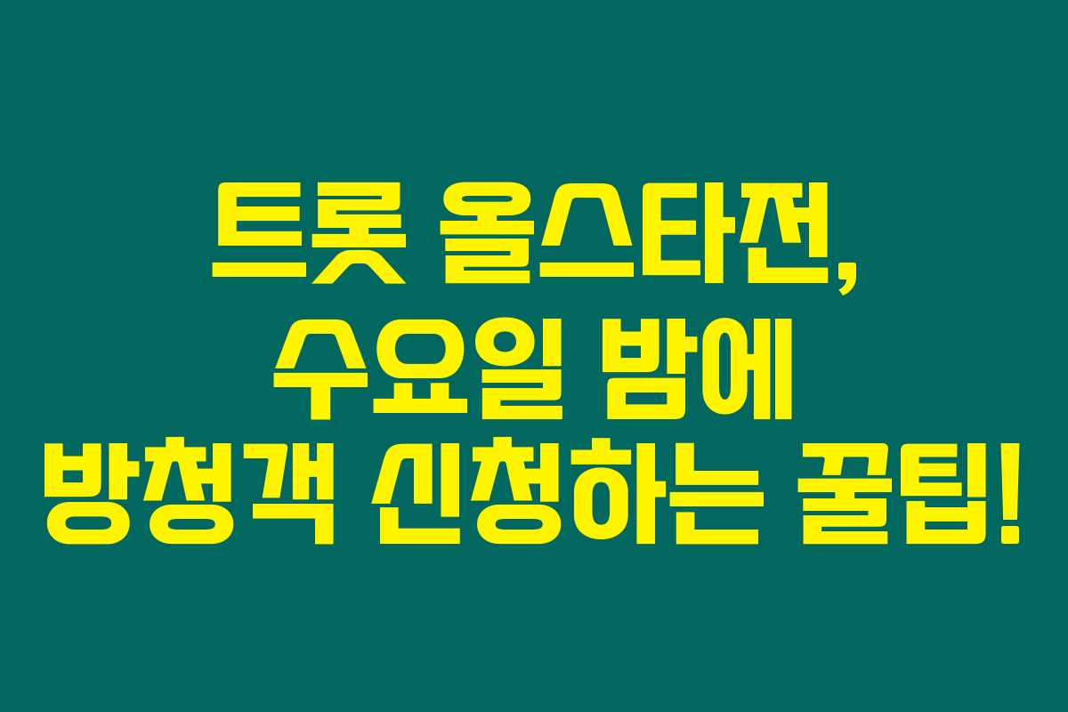 수요일 밤, 여러분의 가슴이 뛰고 있나요? 많은 분들이 예능 프로그램에서 ‘찐’ 트롯 무대를 생생하게 보고 싶어하는데요. TV조선에서 만날 수 있는 트롯 최강자들이 한자리에 모이는 기회가 바로 이 프로그램이에요. 놓치면 후회할 방청 신청 방법을 챙겨보세요! 혹시 방청 신청이 어렵다고 느껴져 망설이셨다면? 아래를 읽어보시면 A부터 Z까지 다 알려드릴게요!