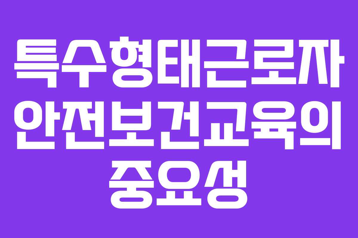 특수형태근로자의 안전보건교육은 이들의 생명과 건강을 지키기 위해 반드시 필요한 절차입니다. 이를 통해 안전한 근무 환경을 조성할 수 있습니다.