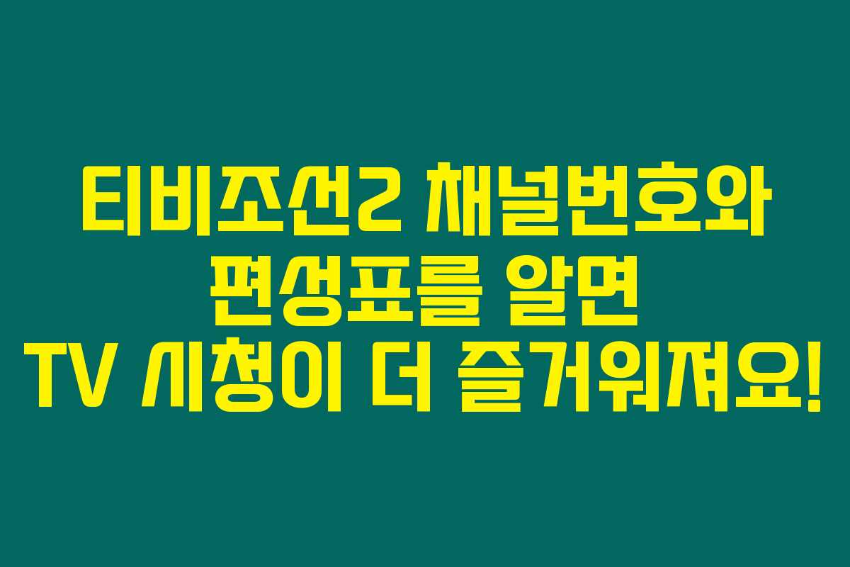 티비조선2의 채널번호와 편성표에 대한 정보를 제대로 알고 시청하시면 더욱 즐거운 티비 감상이 가능할 거예요. 여러분의 소소한 정보가 많은 즐거움을 가져다줄 수 있길 바라며, 오늘도 좋은 프로그램과 함께 즐거운 시간 보내세요!