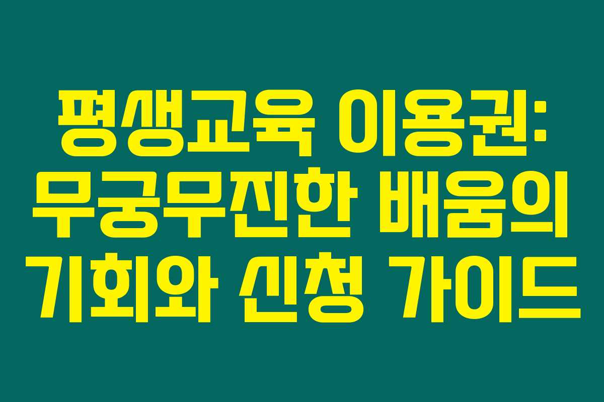 평생교육 이용권은 저소득층 성인이 교육을 통해 자립할 수 있도록 지원하기 위한 금융적 도움이에요. 교육의 기회는 본인에게 주어진 권리이며, 이 바우처는 그러한 기회를 제공하는 중요한 도구랍니다.