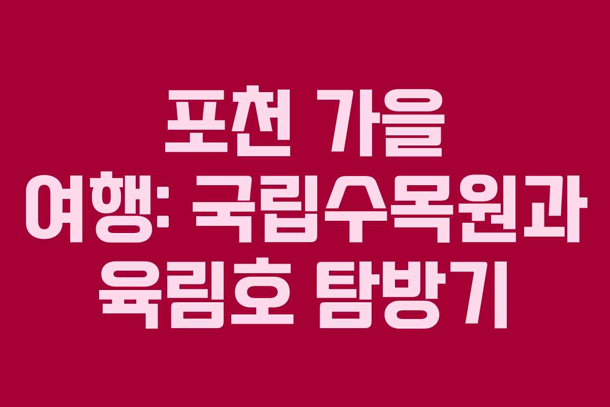 가을의 정취를 느끼며 아내와 딸아이와 함께 포천으로 여행을 떠났습니다. 이번 여행의 주요 목적지는 국립수목원과 육림호입니다. 아름다운 자연을 만끽할 수 있는 이곳은 가족과 함께하기에 최적의 장소입니다.