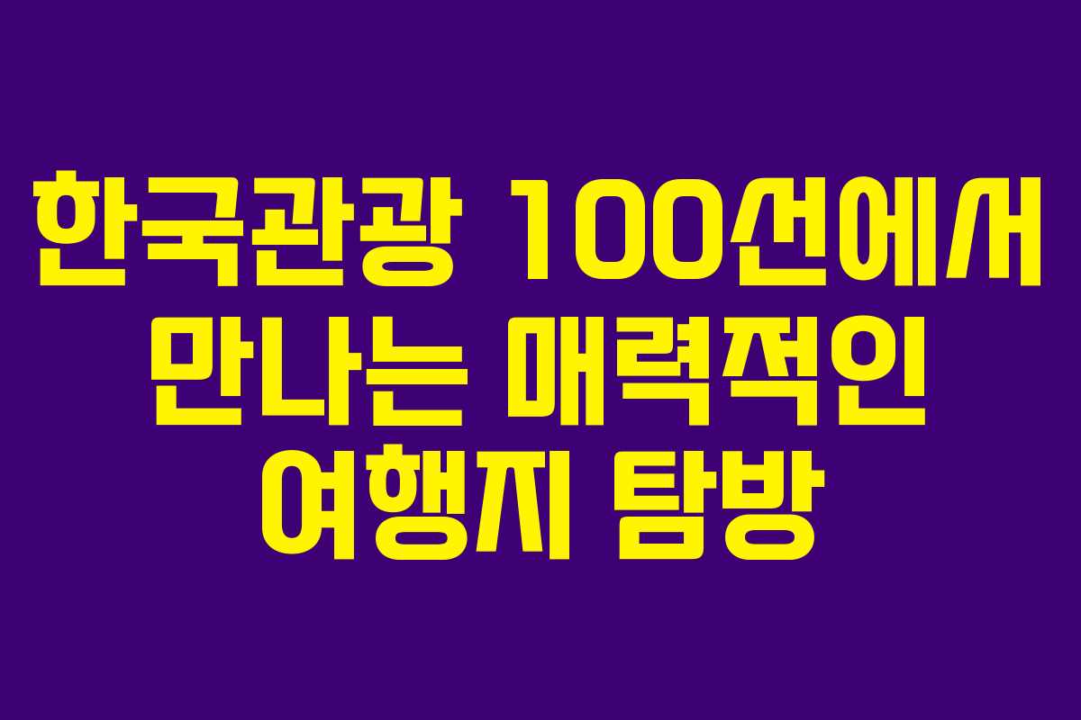 한국관광 100선에서 만나는 매력적인 여행지 탐방