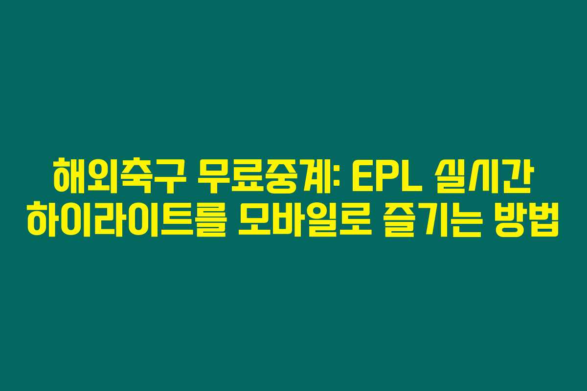 프리미어리그(EPL)와 한국 축구 스타 손흥민, 김민재의 경기를 실시간으로 무료로 보려는 분들 주목! 다양한 방법으로 해외 축구 중계를 즐길 수 있는 팁을 제공합니다. 아래를 읽어보시면 여러분의 한정된 시간 안에 최고의 축구 경험을 느낄 수 있답니다.