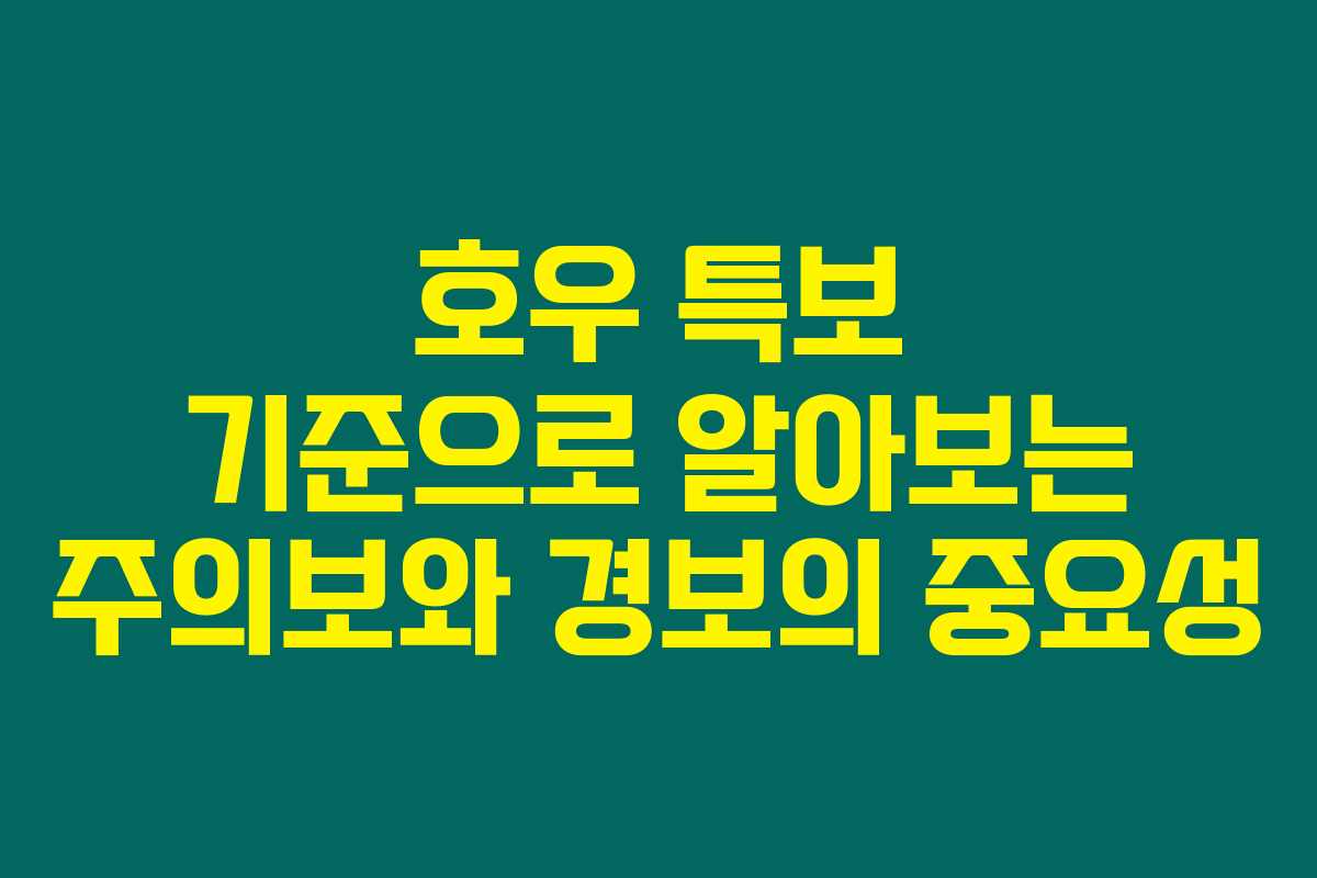호우 특보는 기상청에서 발령하는 경고로, 강수량이 특정 기준을 초과할 때 발령되죠. 이를 통해 예상치 못한 자연재해에 대비할 수 있는 기회를 제공합니다. 아래를 읽어보시면 평소에 우리가 알아야 할 호우 특보의 종류와 그 기준에 대한 유용한 정보를 확인할 수 있습니다.