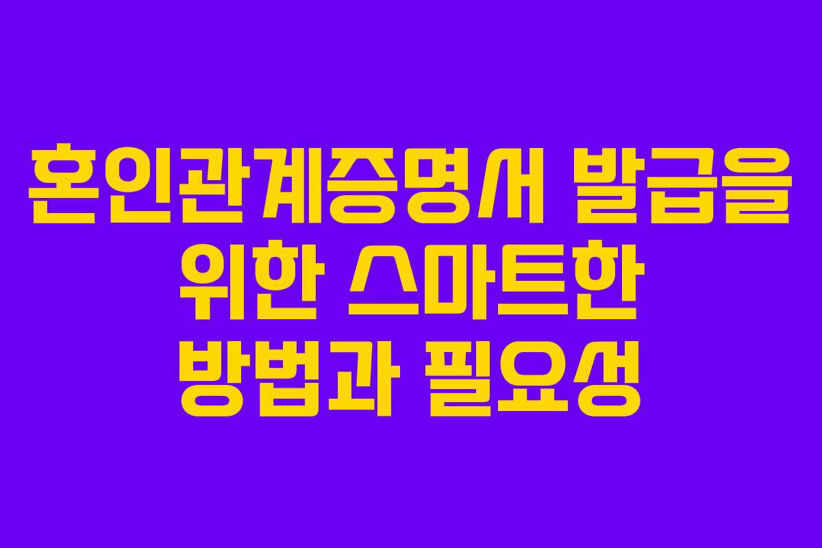 혼인관계증명서는 결혼 사실을 공식적으로 증명하는 중요한 문서입니다. 이제는 바쁜 일상 속에서도 간편하게 혼인관계증명서를 발급받을 수 있는 방법을 소개하겠습니다. 이 문서를 통해 필요한 상황에서 법적 증명을 쉽게 할 수 있는 방법을 살펴보겠습니다.