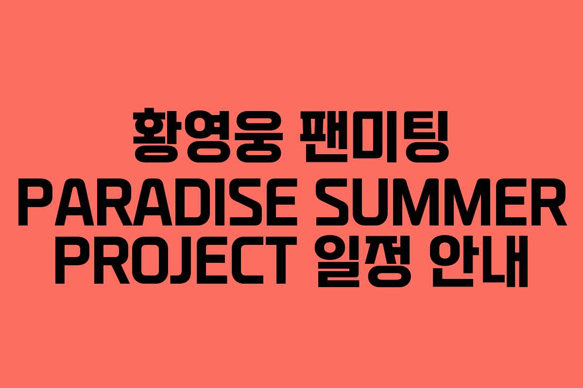 2025년 여름, 가수 황영웅의 팬미팅 소식이 전해졌습니다. 팬들과의 소중한 만남을 위해 마련된 이번 팬미팅에 대한 기본 정보를 알아보겠습니다.