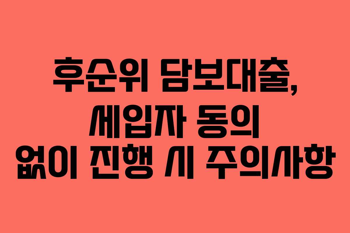 후순위 담보대출, 세입자 동의 없이 진행 시 주의사항