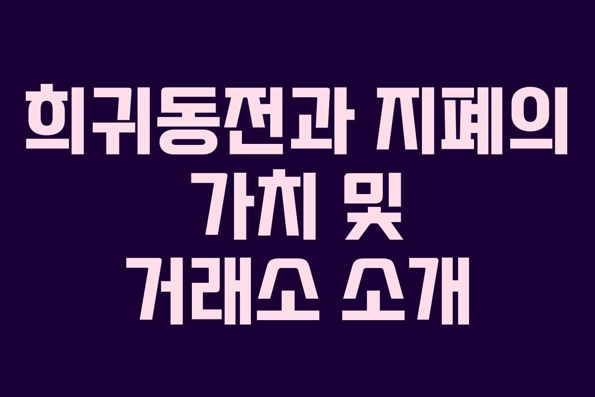 한국에서 희귀동전을 거래할 수 있는 주요 거래소는 다음과 같습니다: