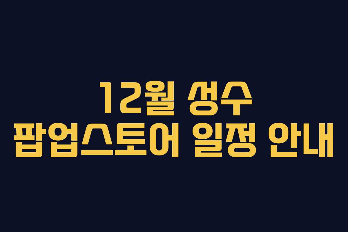12월 성수 지역에서 진행되는 팝업스토어 일정에 대해 소개합니다. 이번 주에는 새로운 팝업이 줄어들었지만, 이어서 진행되는 다양한 팝업들이 있어 성수 지역을 방문하기에 좋은 시점입니다.