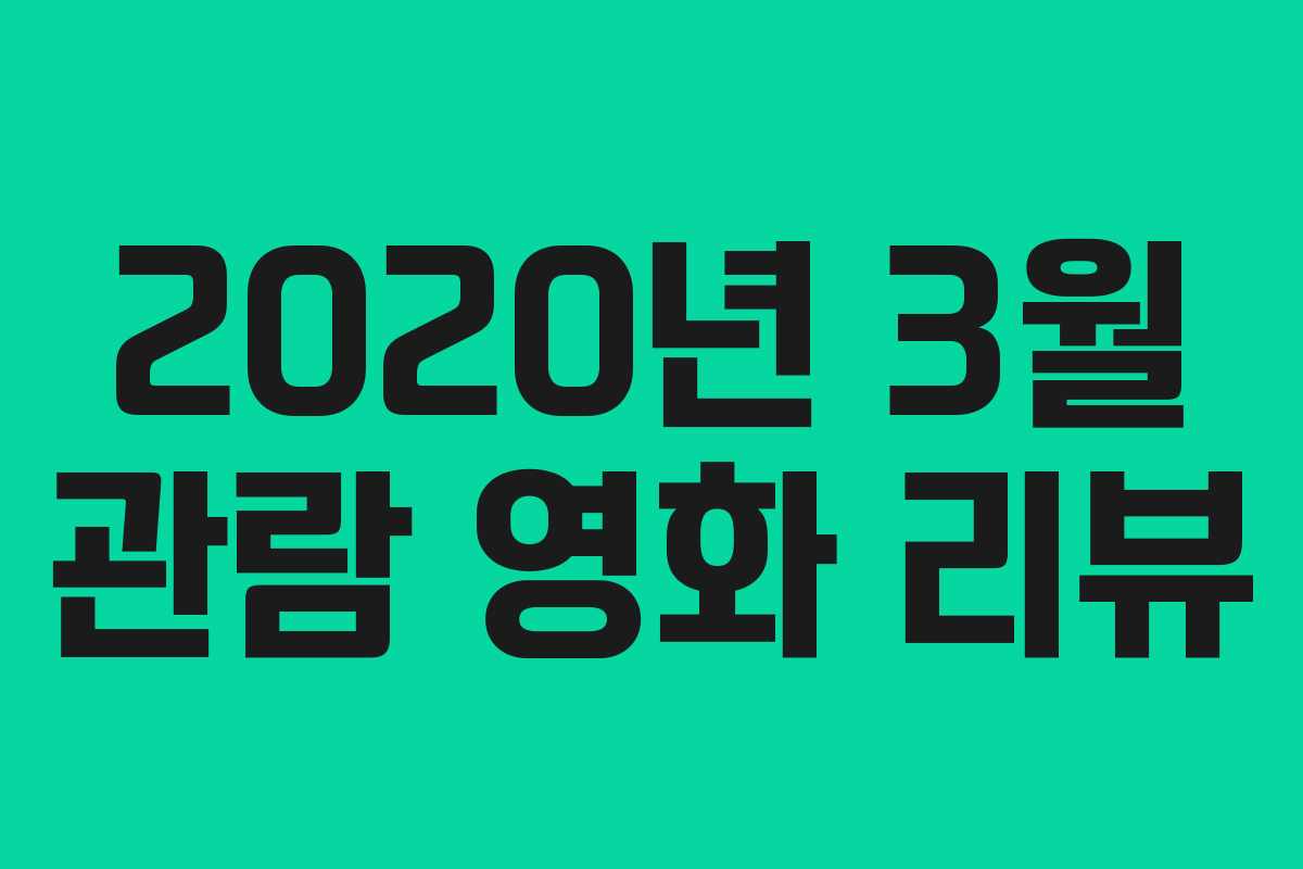 2020년 3월, 코로나19로 인해 영화관의 환경이 크게 변화했습니다. 재개봉관으로 바뀐 극장에서는 상영 인원이 줄어들어 조용한 분위기 속에서 여러 영화를 감상할 수 있었습니다. 이번 포스팅에서는 3월에 관람한 영화들을 리뷰하고자 합니다.