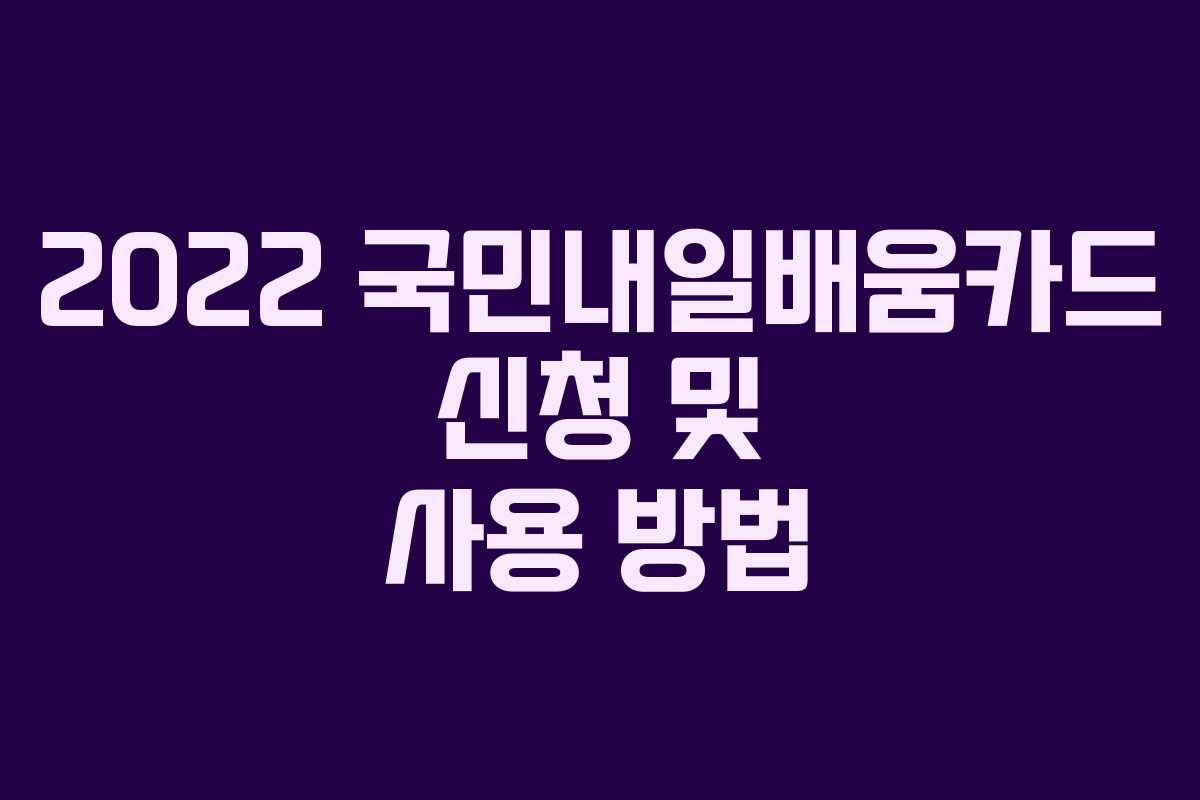 국민내일배움카드는 모든 국민이 직업능력 개발을 위해 지원받을 수 있는 제도로, 2022년에는 다양한 혜택이 추가되었습니다. 이 글에서는 국민내일배움카드의 신청 대상과 사용 방법에 대해 자세히 알아보겠습니다.
