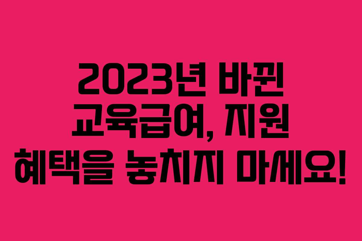 2023년 교육급여는 평균 20% 이상 인상되었습니다. 초등학생은 415,000원, 중학생은 589,000원, 고등학생은 654,000원의 지원금을 받을 수 있습니다. 이는 저소득층 학생들에게 큰 도움이 될 것입니다.