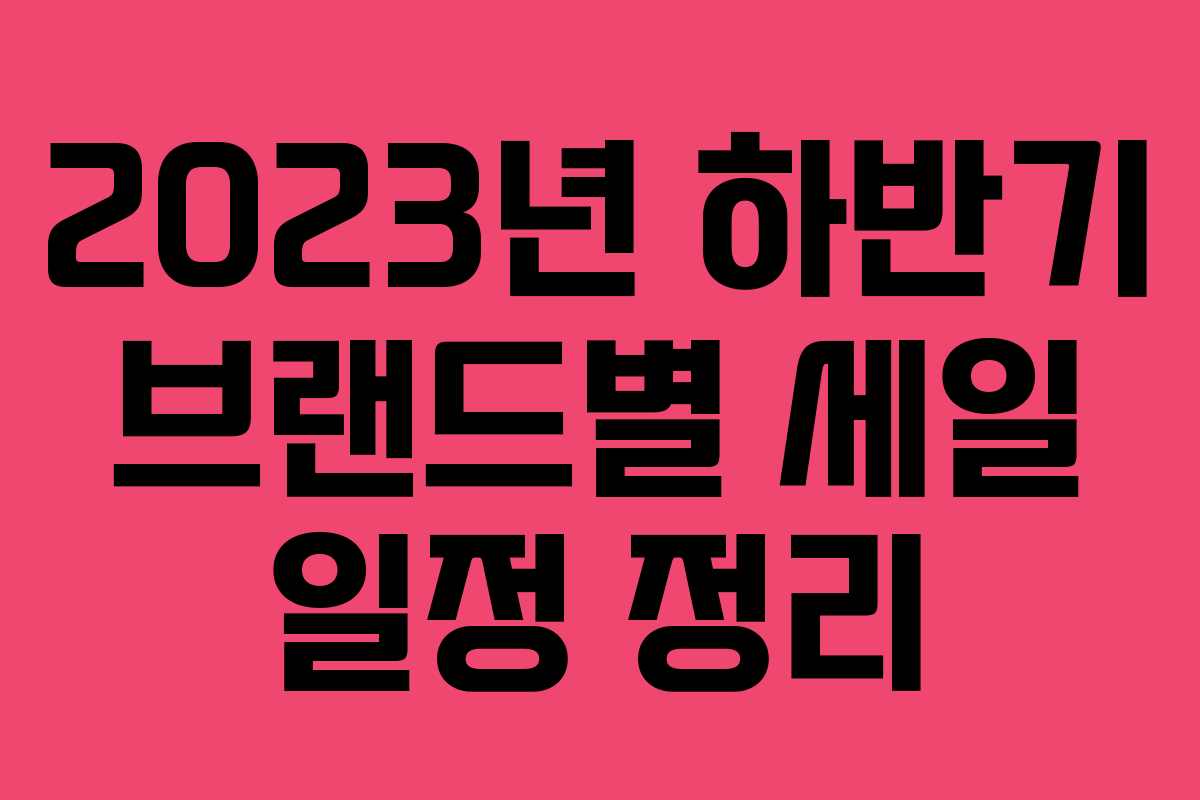 여름이 끝나고 가을과 겨울을 맞이하며 많은 브랜드에서 세일을 진행할 예정입니다. 이번 포스트에서는 2023년 하반기에 예정된 브랜드별 세일 기간을 정리해보았습니다. 특히 추석과 겨울철 세일 일정에 대한 정보가 포함되어 있으니, 원하는 제품을 더욱 저렴하게 구매할 수 있는 기회를 놓치지 마세요.