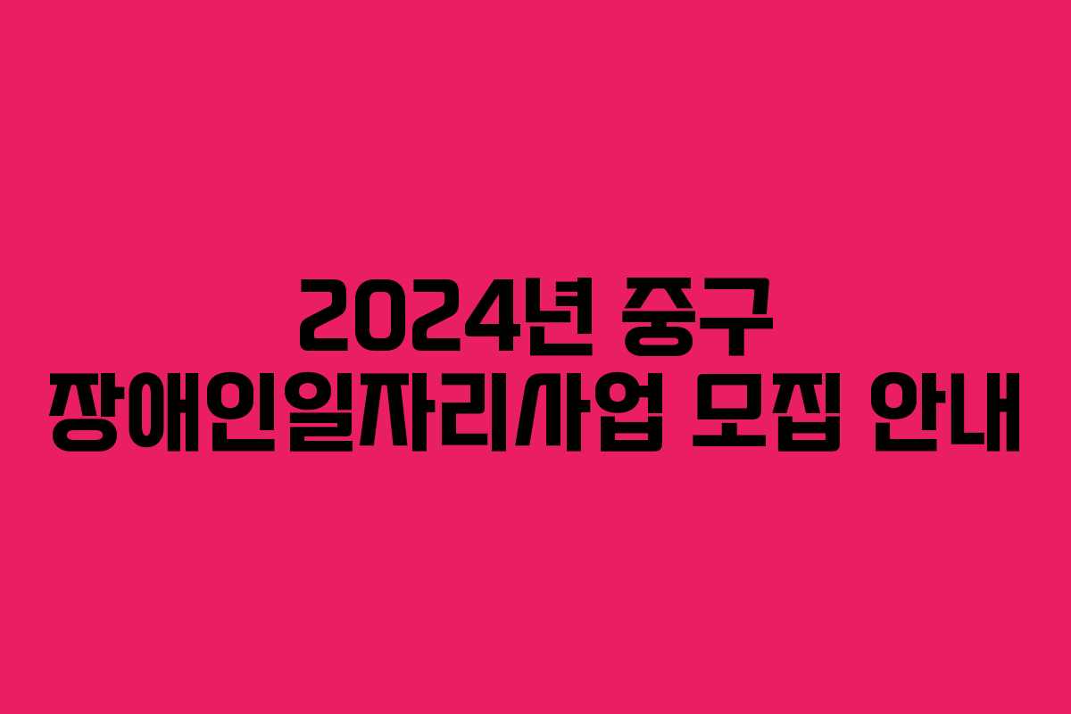 중구에서는 장애인의 사회참여를 확대하고 소득 보장을 지원하기 위해 2024년 장애인일자리사업에 참여할 장애인을 모집합니다. 이번 기회를 통해 많은 장애인분들이 사회에 기여할 수 있기를 바랍니다.