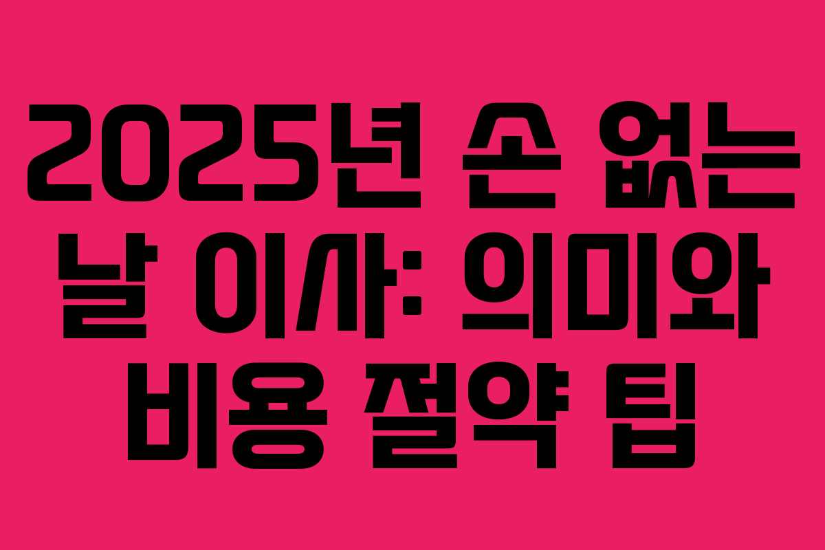 이사를 계획 중이신가요? 특히 2025년 손 없는 날에 이사를 고려하고 있다면 이 글을 통해 손 없는 날의 의미, 이사 비용, 절약 팁 등을 종합적으로 살펴보세요.