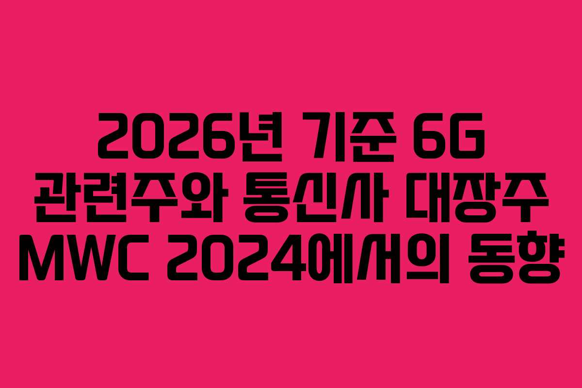 2026년에는 통신 기술의 혁신이 더욱 가속화되며, 6G의 상용화를 위한 중요한 이정표가 마련될 예정이다. MWC 2024에서는 한국의 주요 통신사들이 AI와 6G 관련 기술을 통해 미래 통신 환경을 선도하고자 하는 의지를 보이고 있다. 이번 포스팅에서는 MWC 2024에서의 통신사들의 활동과 6G 관련주에 대해 상세히 살펴보겠다.