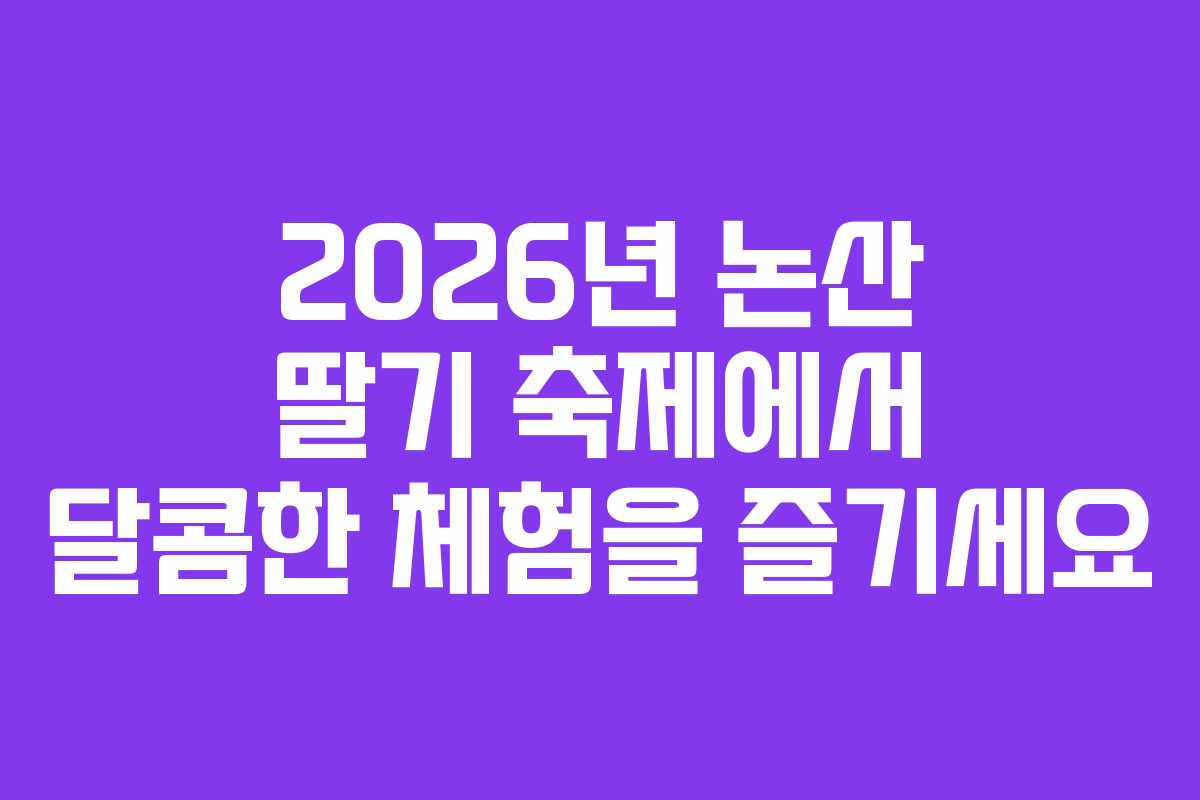 2026년 논산 딸기 축제는 여러분을 기다리고 있습니다. 다양한 프로그램과 먹거리를 통해 특별한 경험을 쌓아보세요. 설레는 마음으로 축제를 맞이해보세요.