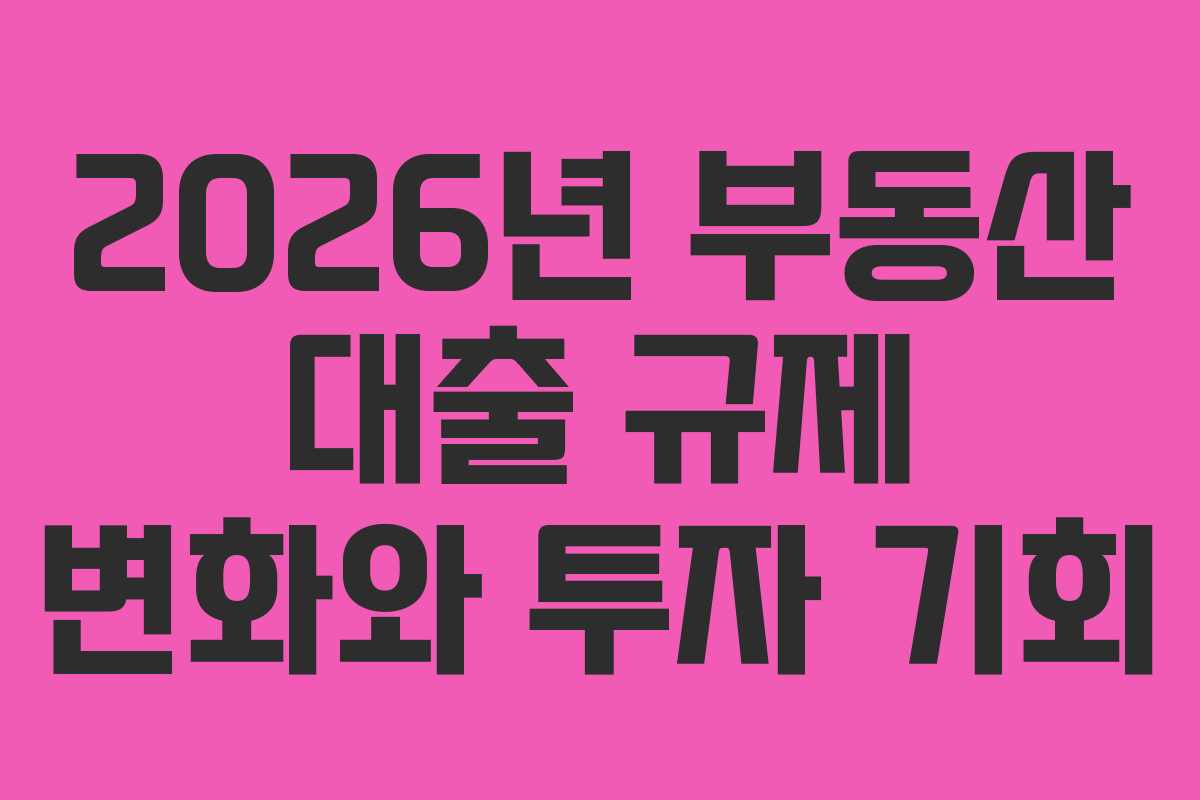 2026년에는 부동산 대출 규제가 다시 한번 변화할 예정이다. 기존의 여러 규제들이 완화되면서 투자자들에게 다양한 기회를 제공하고 있지만, 그만큼 신중한 접근이 필요하다. 이번 글에서는 2026년 부동산 대출 규제의 주요 내용과 이에 따른 투자자들의 대처 방안을 살펴보겠다.