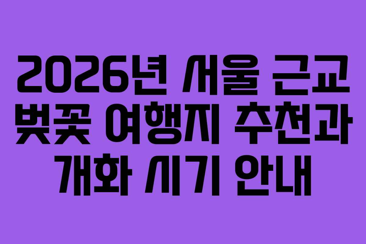 매년 봄이 오면 많은 이들이 기다리는 풍경이 바로 벚꽃입니다. 특히 2026년 서울을 기준으로 한 벚꽃 개화 시기가 다가오고 있습니다. 봄이 찾아오는 이 시점에 맞춰 주말에 나들이 계획을 세운다면 놓치지 말아야 할 서울 근교의 벚꽃 명소를 소개합니다. 이 글에서는 특히 당일치기로 다녀올 수 있는 여행지를 중심으로 상세한 정보를 제공합니다.