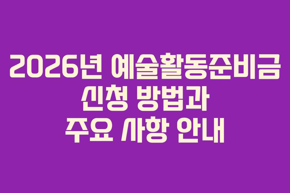2026년 예술활동준비금은 예술인들이 창작 활동을 원활하게 이어갈 수 있도록 지원하는 제도로, 많은 예술인에게 실질적인 도움을 주고 있습니다. 본 가이드에서는 신청 방법과 필요한 서류, 주요 일정 등을 상세히 설명합니다.