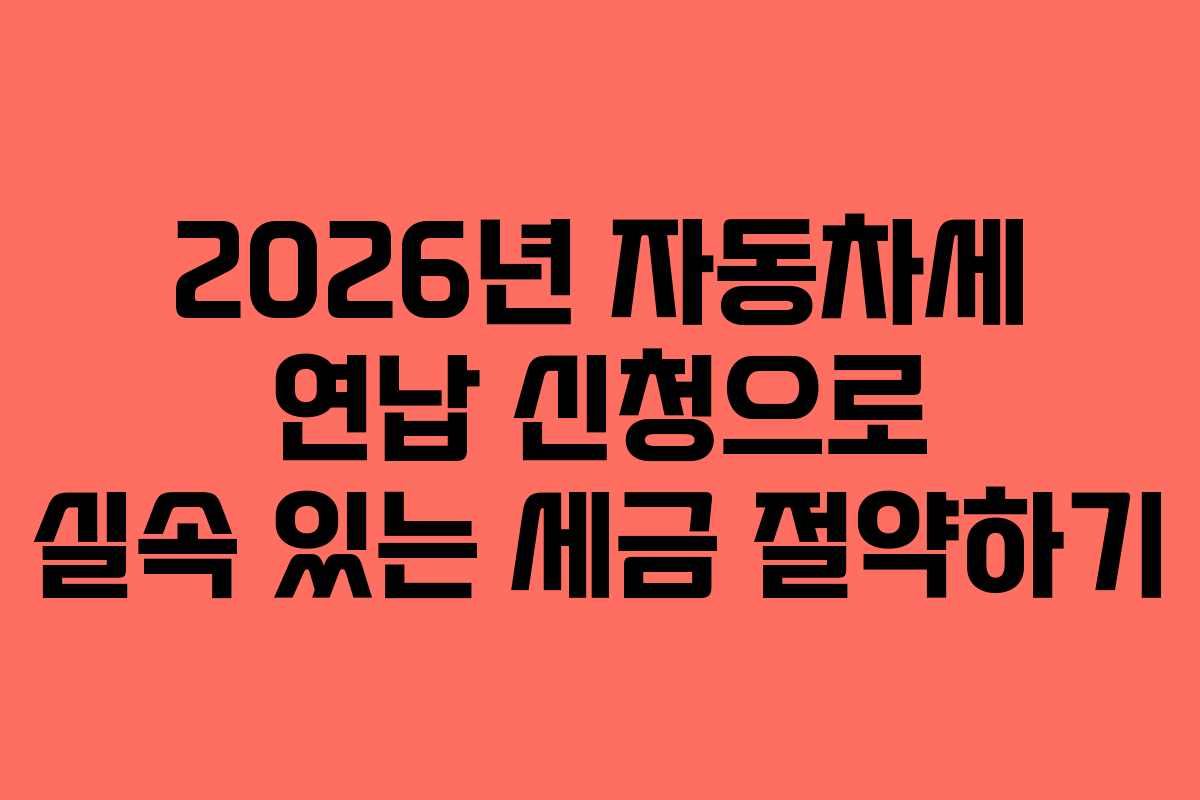 2026년 자동차세 연납 신청은 1월 16일부터 2월 2일까지 가능합니다. 기한 내에 신청하지 않으면 정기분 세액으로 부과되니 주의해야 합니다.