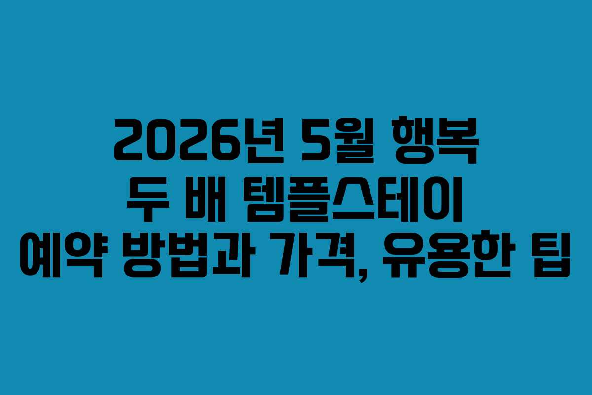 2026년 5월, 마음의 평화를 찾고 휴식을 원하는 이들에게 반가운 소식이 있습니다. 바로 ‘행복 두 배 템플스테이’ 이벤트가 진행되며, 정가보다 훨씬 합리적인 가격으로 템플스테이를 경험할 수 있는 기회가 열립니다. 템플스테이는 조용한 사찰에서 심신을 정화하고 내면의 평화를 찾는 특별한 체험으로, 매년 많은 사람들이 이 프로그램에 참여합니다. 이 글에서는 2026년 템플스테이의 운영 일정, 예약 방법, 유용한 팁 등을 살펴보겠습니다.